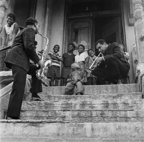 本日(30日)の昼間、ネット検索中に出会った1枚の素敵な写真。 良い写真です。子供たちに楽器を吹いて見せて(聴かせて)いる、アート・ファーマー(トランペット)とベニー・ゴルソン(テナー・サックス)。二人とも高名なジャズ・ミュージシャンです。196…
