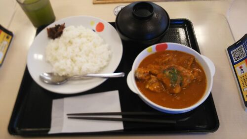 夜勤帰りに松屋東広島西条店で朝食。12月15日より数量限定(当店舗の場合は22日までの1週間限定で)でメニューに復活したという、「ごろごろチキンのバターチキンカレー」の並盛を食べてきた。 確か今年の夏頃にやはり期間限定でメニューにあった時に食べて…